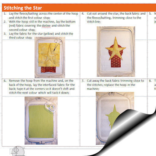 The tealight holders can be embellished with hotfix crystals and/or beads, but it is not necessary.  Stitch counts range from 4,500 stitches to 11,000 stitches for each of the 6 pieces (3 back pieces and 3 mix 'n match front pieces).  Materials needed to complete the project: fleece or batting, stiff (heavy weight) regular fusible interfacing, fusible web, fabric, and a few brads for assembly (hotfix crystals and/or beads optional).